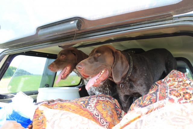Утром быстро позавтракав отправляемся с собаками искать куропатку, надо перед состязаниями дать собакам поработать, освоится.....